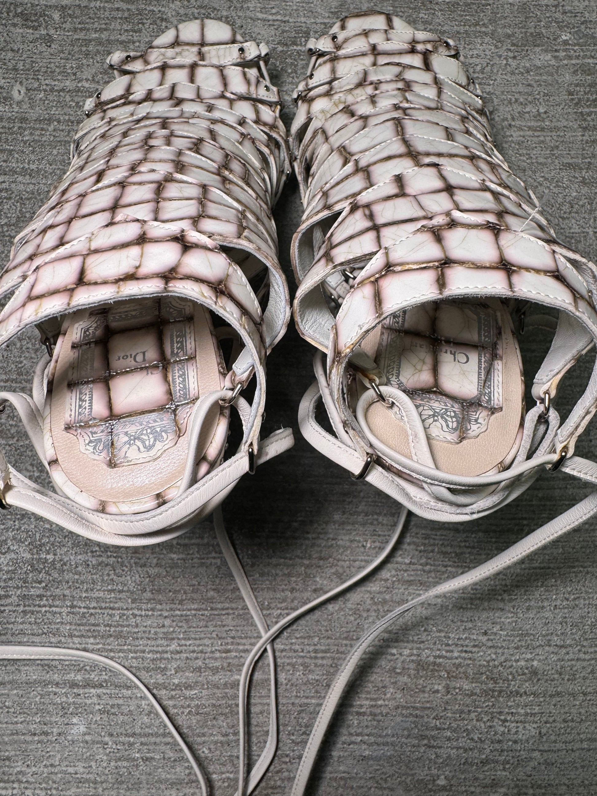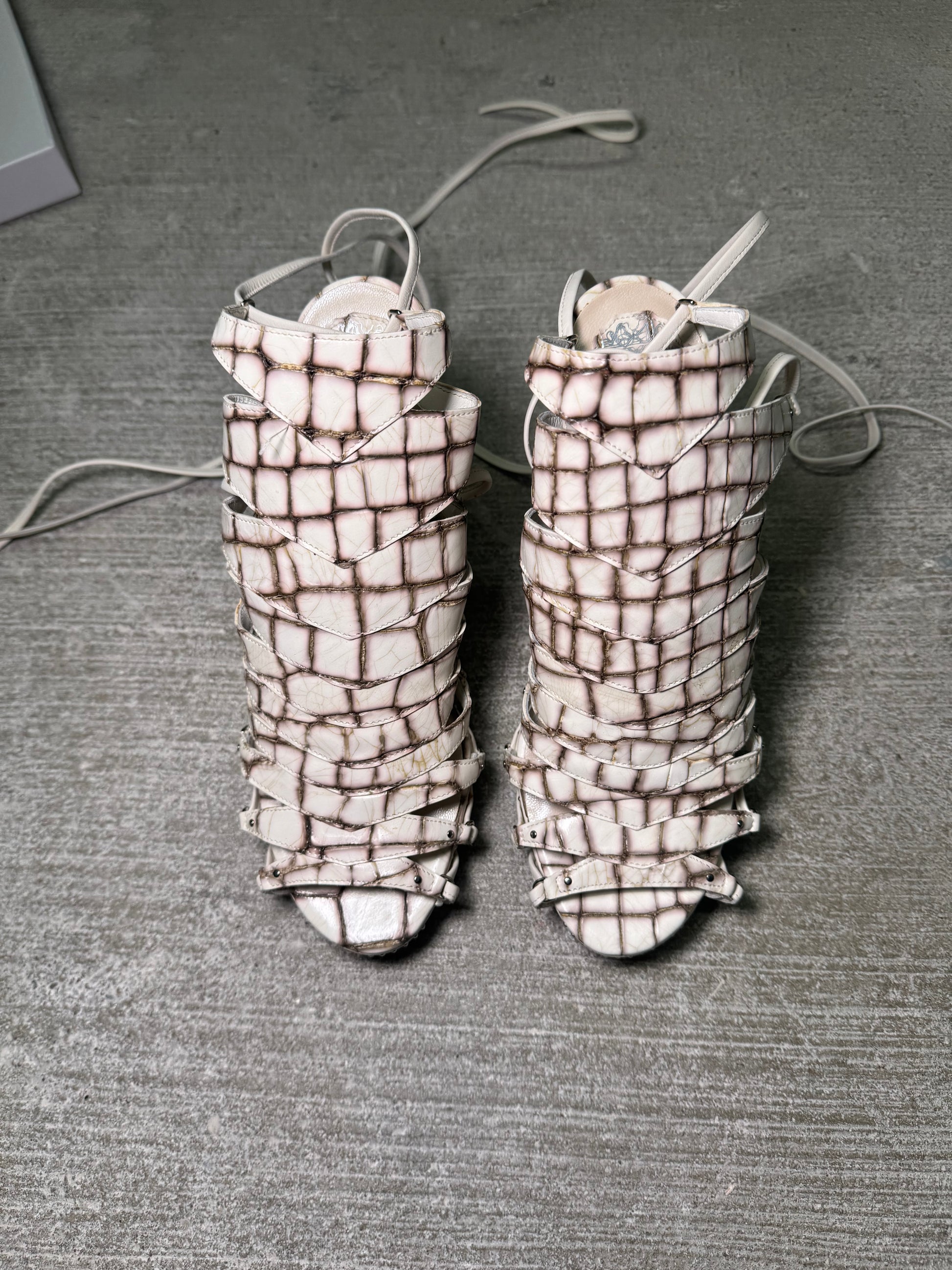 Item: Christian Dior Spring/Summer 2009 “Safari” Runway Heels. Crocodile-Embossed Lace-Up Sandals