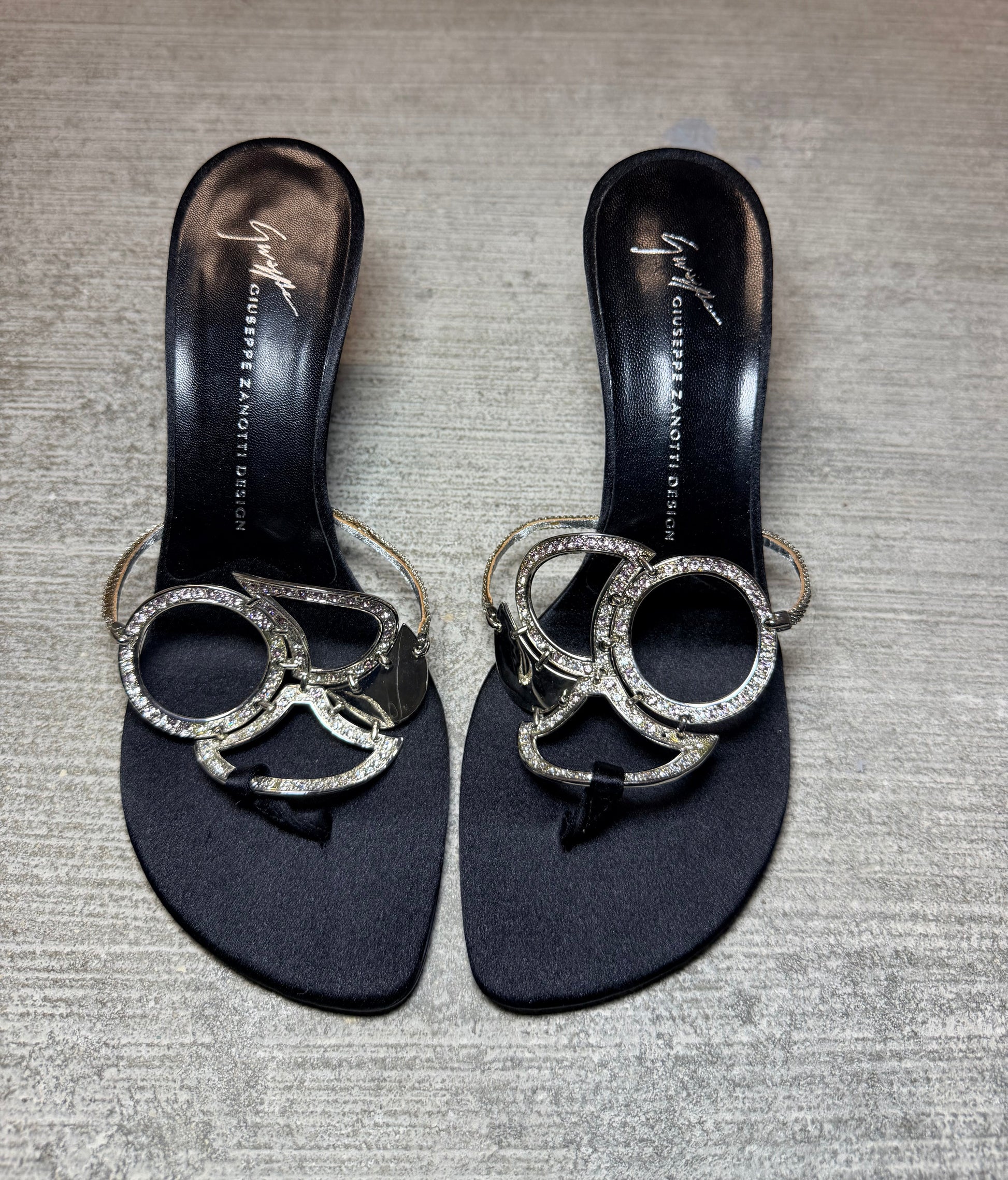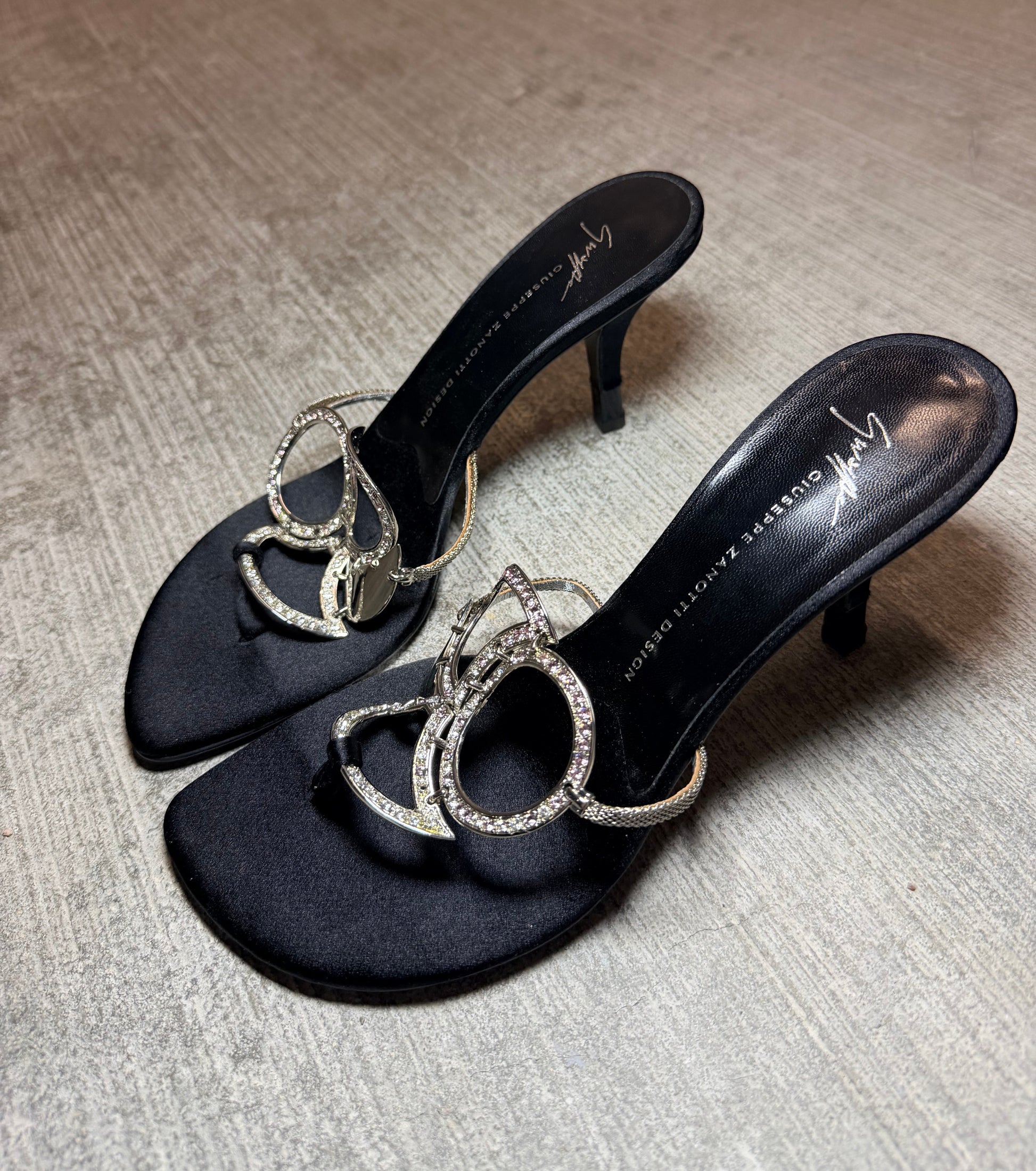 Giuseppe Zanotti Black & Silver Crystal-Embellished Heels